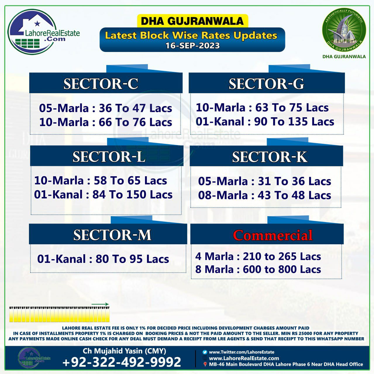 DHA Gujranwala Plot Prices Blockwise Rates 18th September 2023