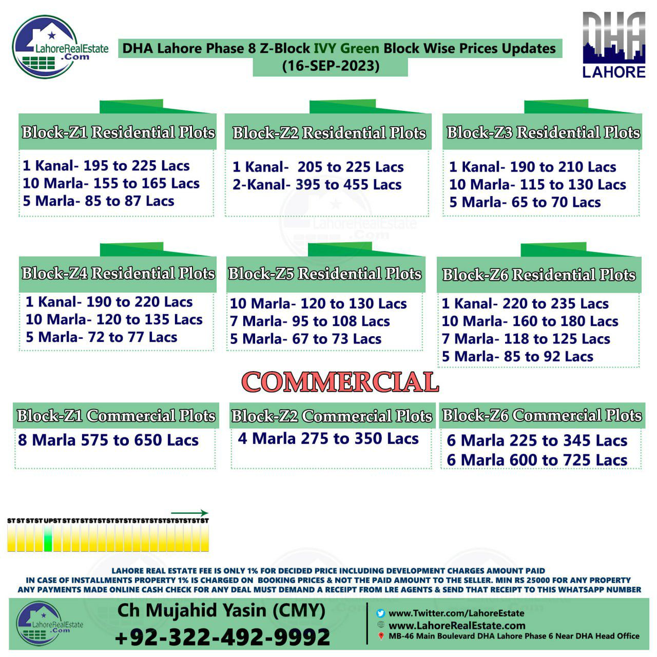 DHA Lahore Phase 8 IVY Green Plot Prices Blockwise Rates 18th September 2023