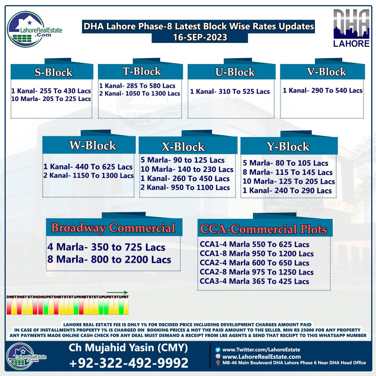 DHA Lahore Phase 8 Plot Prices Blockwise Rates 18th September 2023
