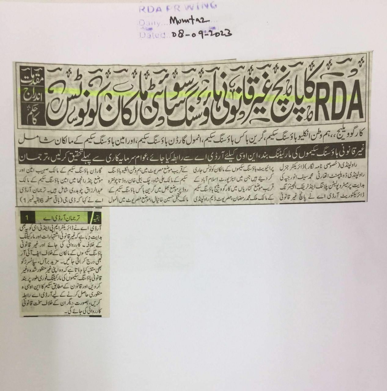 Ravi Urban Development Authority (RUDA) Sapphire Bay Zone-3 Files Prices Update
