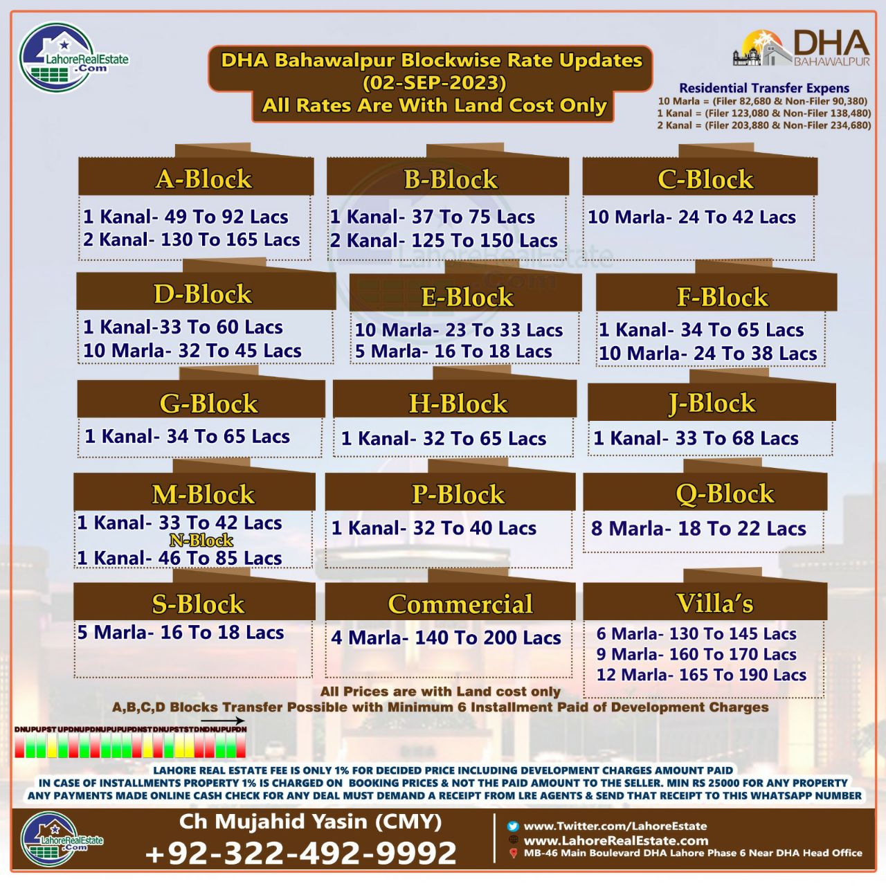 DHA Bahawalpur Plot Prices Blockwise Rates 4th September 2023