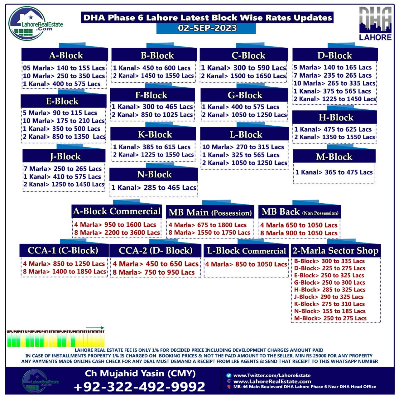 DHA Lahore Phase 6 Plot Prices Blockwise Rates 4th September 2023