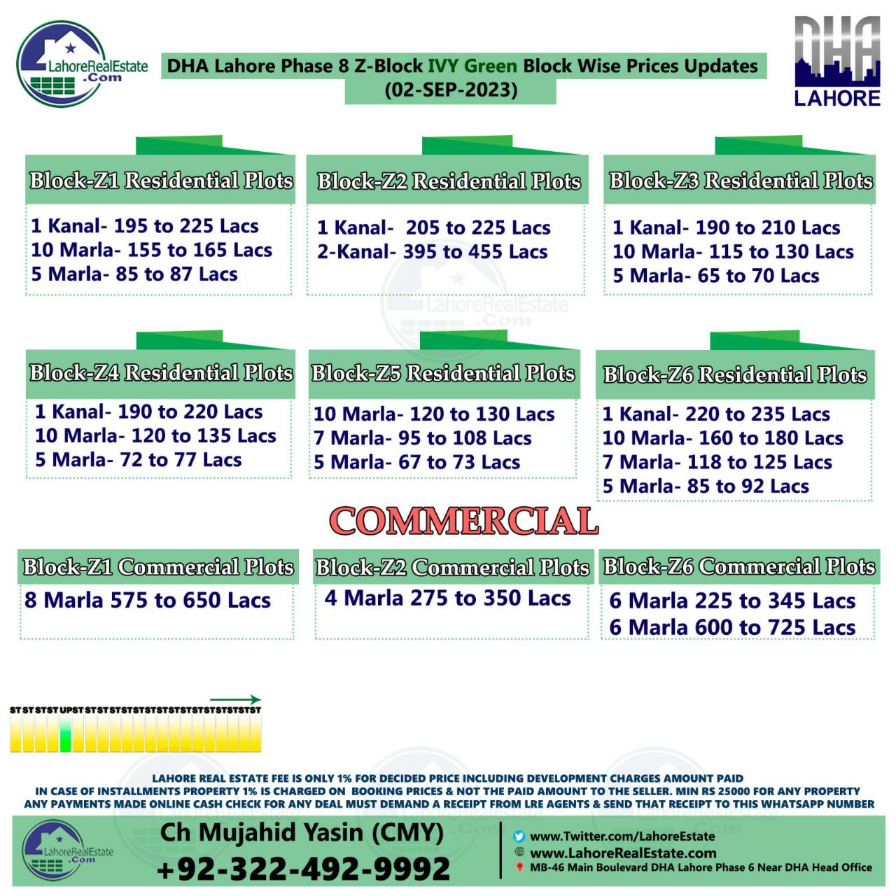DHA Lahore Phase 8 IVY Green Plot Prices Blockwise Rates 4th September 2023