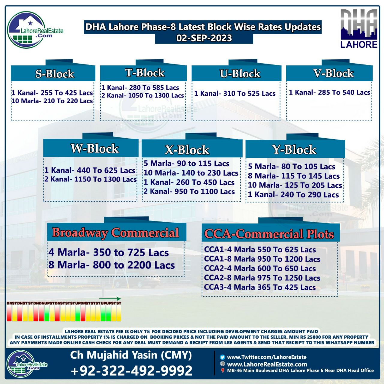 DHA Lahore Phase 8 Plot Prices Blockwise Rates 4th September 2023