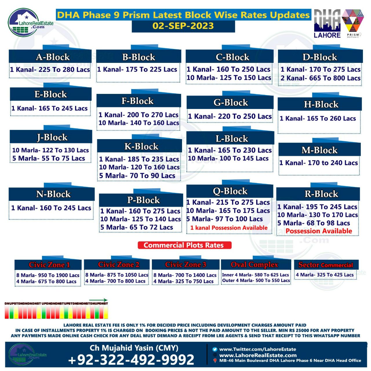 DHA Lahore Phase 9 Prism Plot Prices Blockwise Rates 4th September 2023