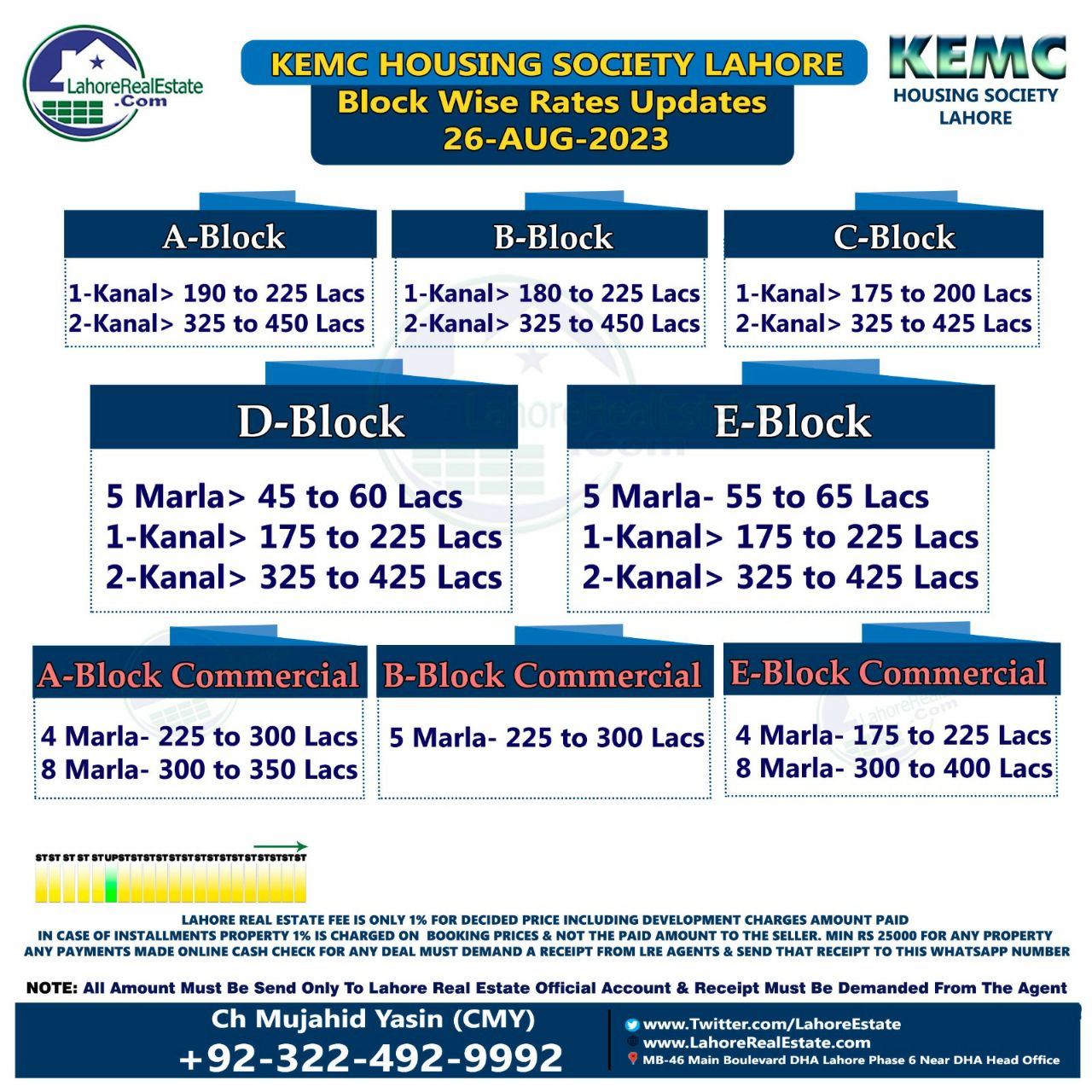KEMC Lahore Plot Prices Blockwise Rates 28 August 2023