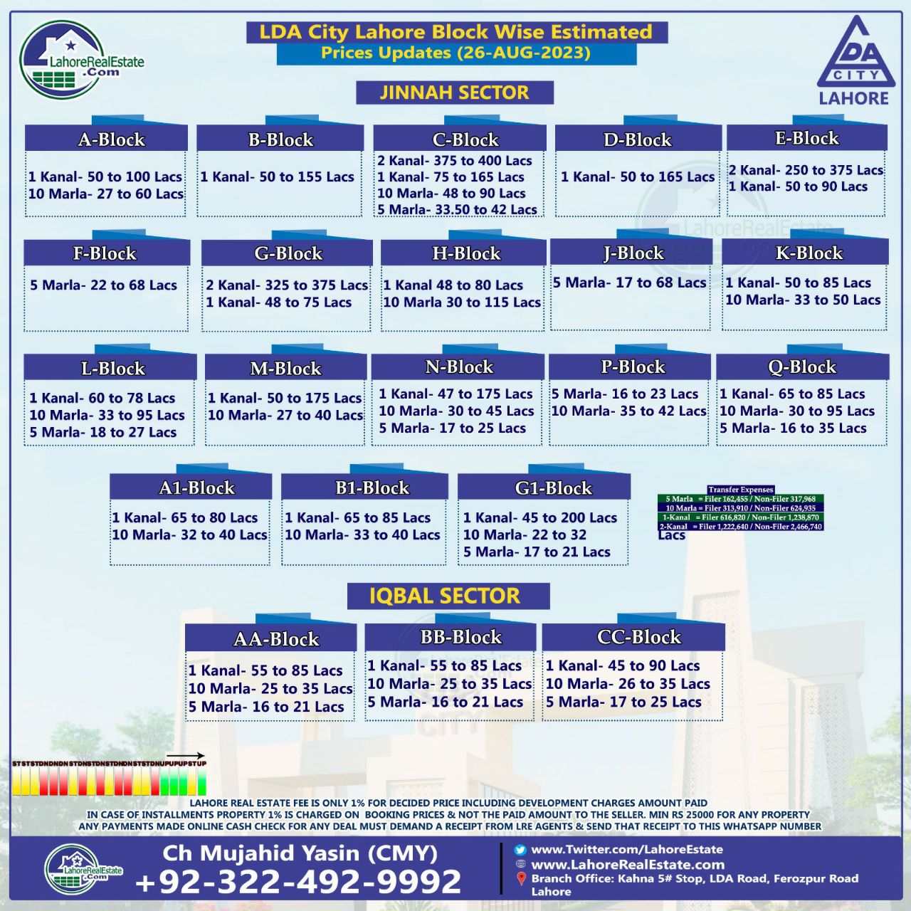 LDA City Lahore Plot Prices Blockwise Rates 28 August 2023