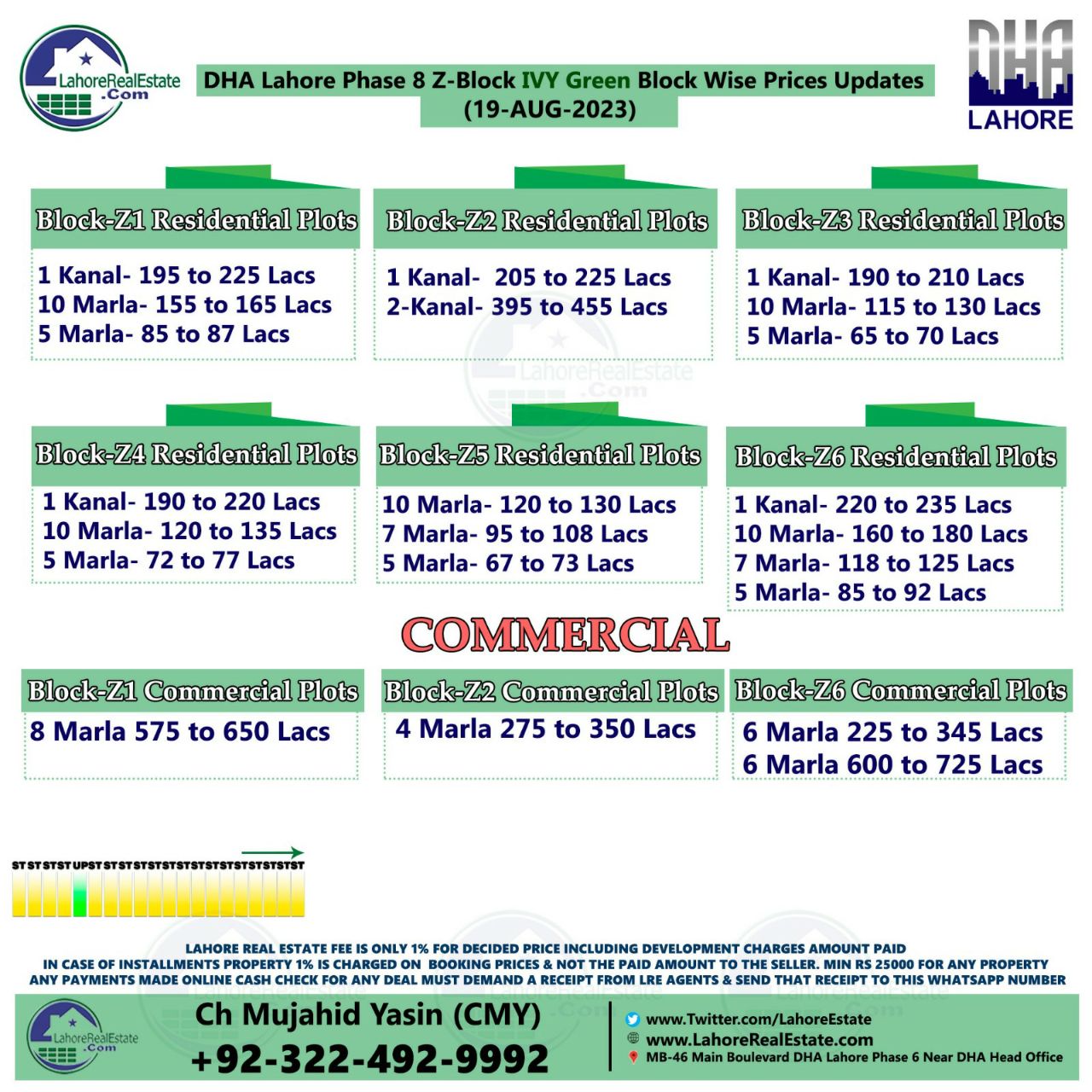 DHA Lahore Phase 8 IVY Green Plot Prices Blockwise Rates 21st August 2023