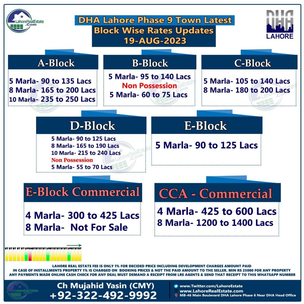 DHA Lahore Phase 9 Town Plot Prices Blockwise Rates 21st August 2023
