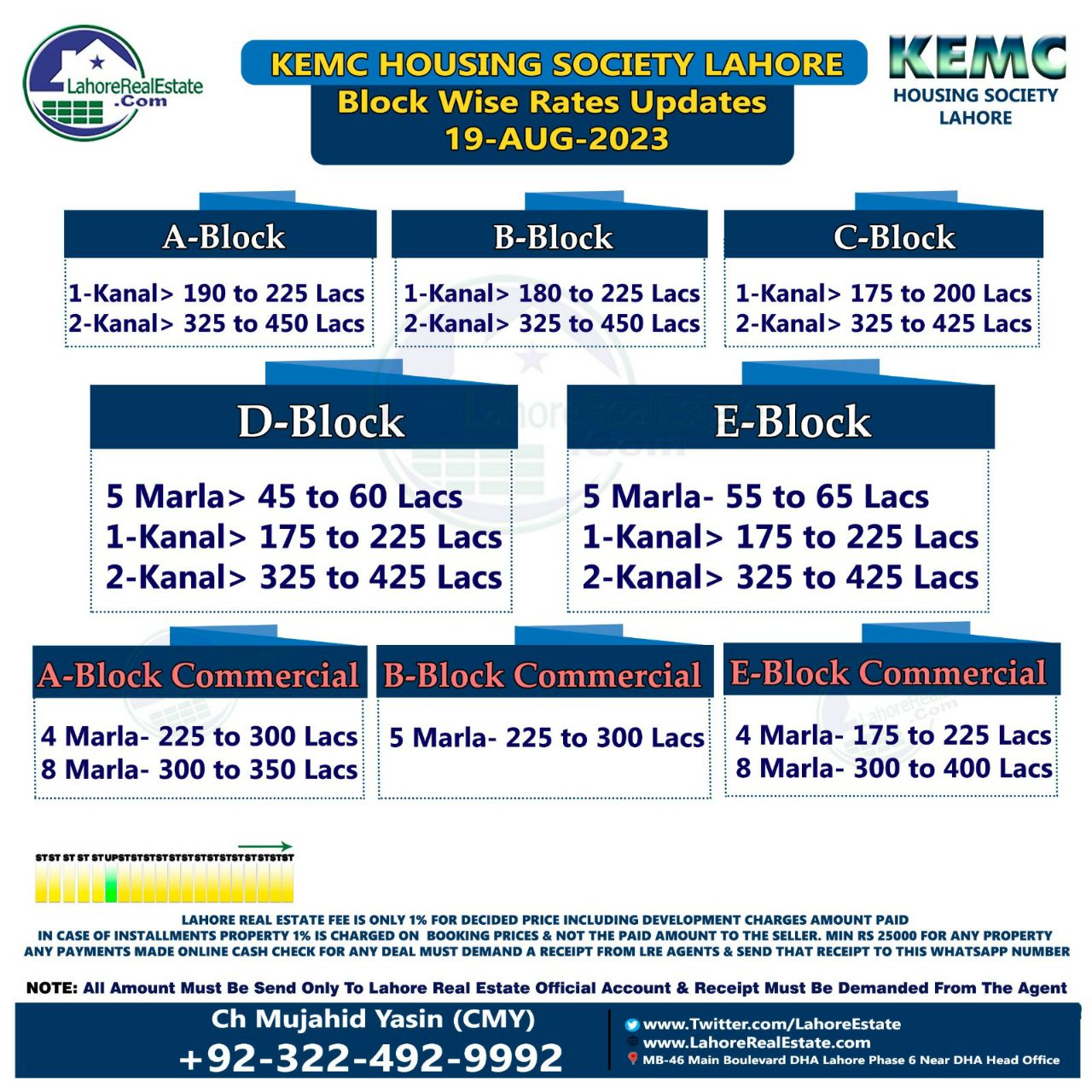 KEMC Lahore Plot Prices Blockwise Rates 21st August 2023