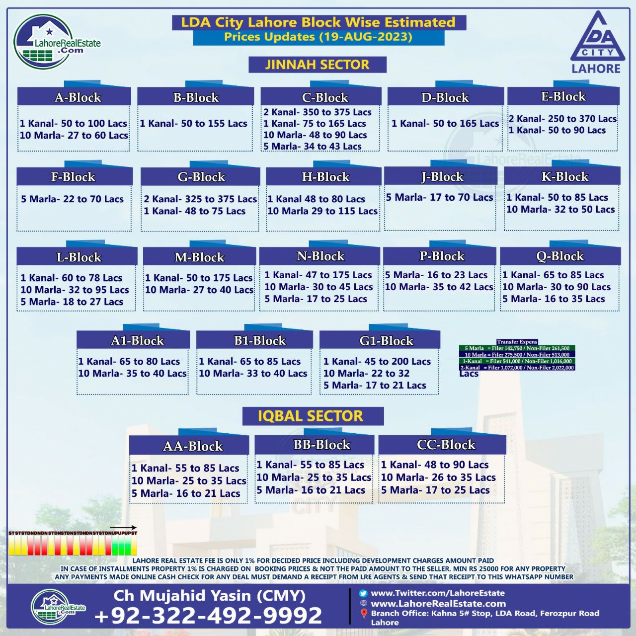 LDA City Lahore Plot Prices Blockwise Rates 21st August 2023