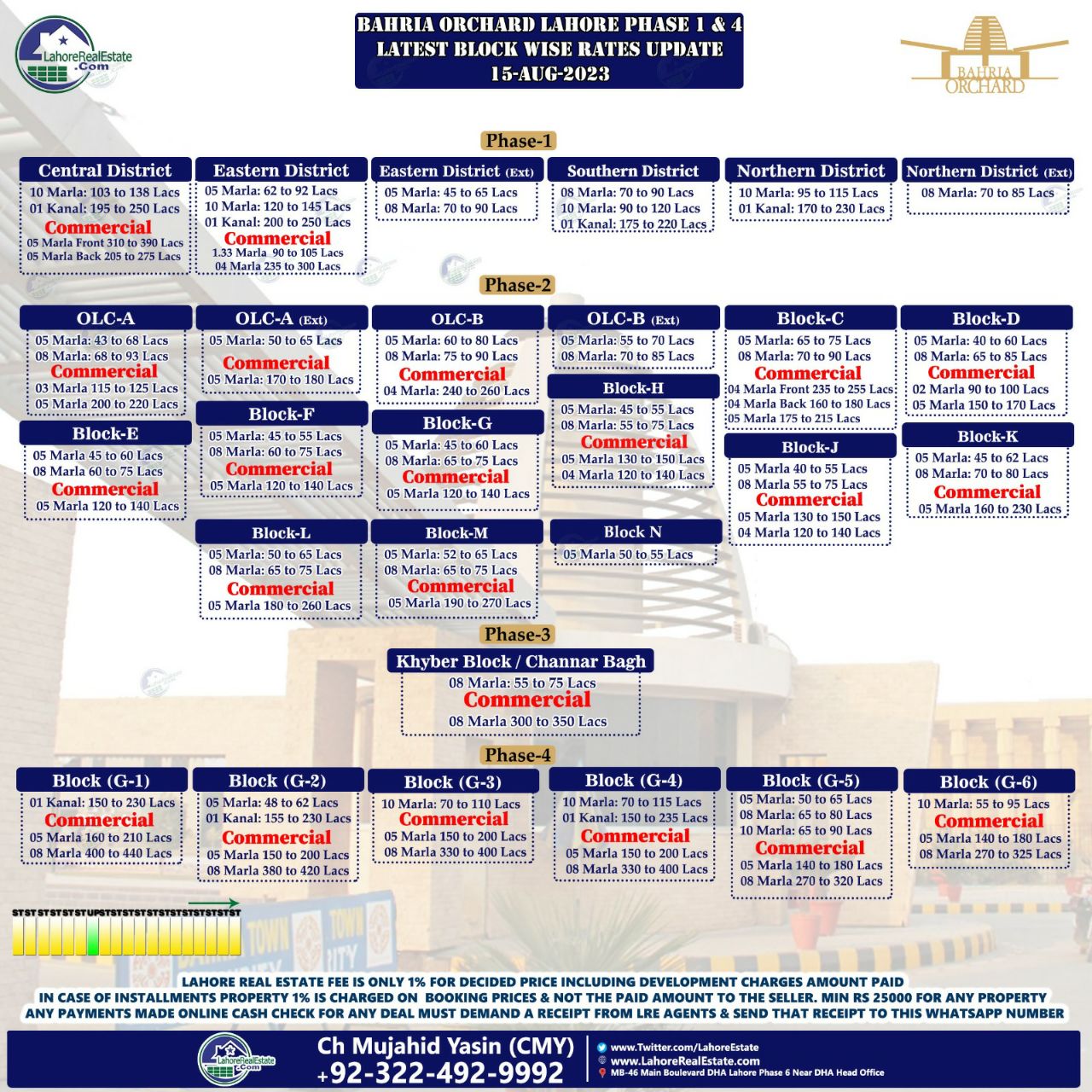 Bahria Orchard Lahore Plot Prices Blockwise Rates 16th August 2023