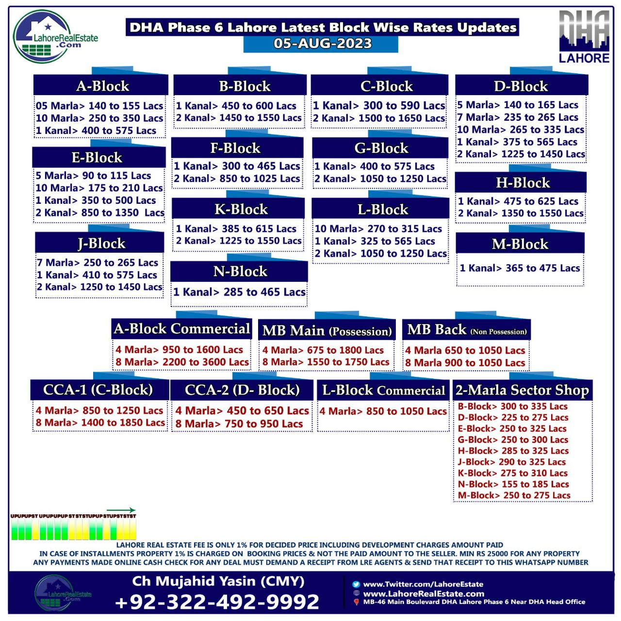 DHA Lahore Phase 6 Plot Prices Blockwise Rates 8th August 2023