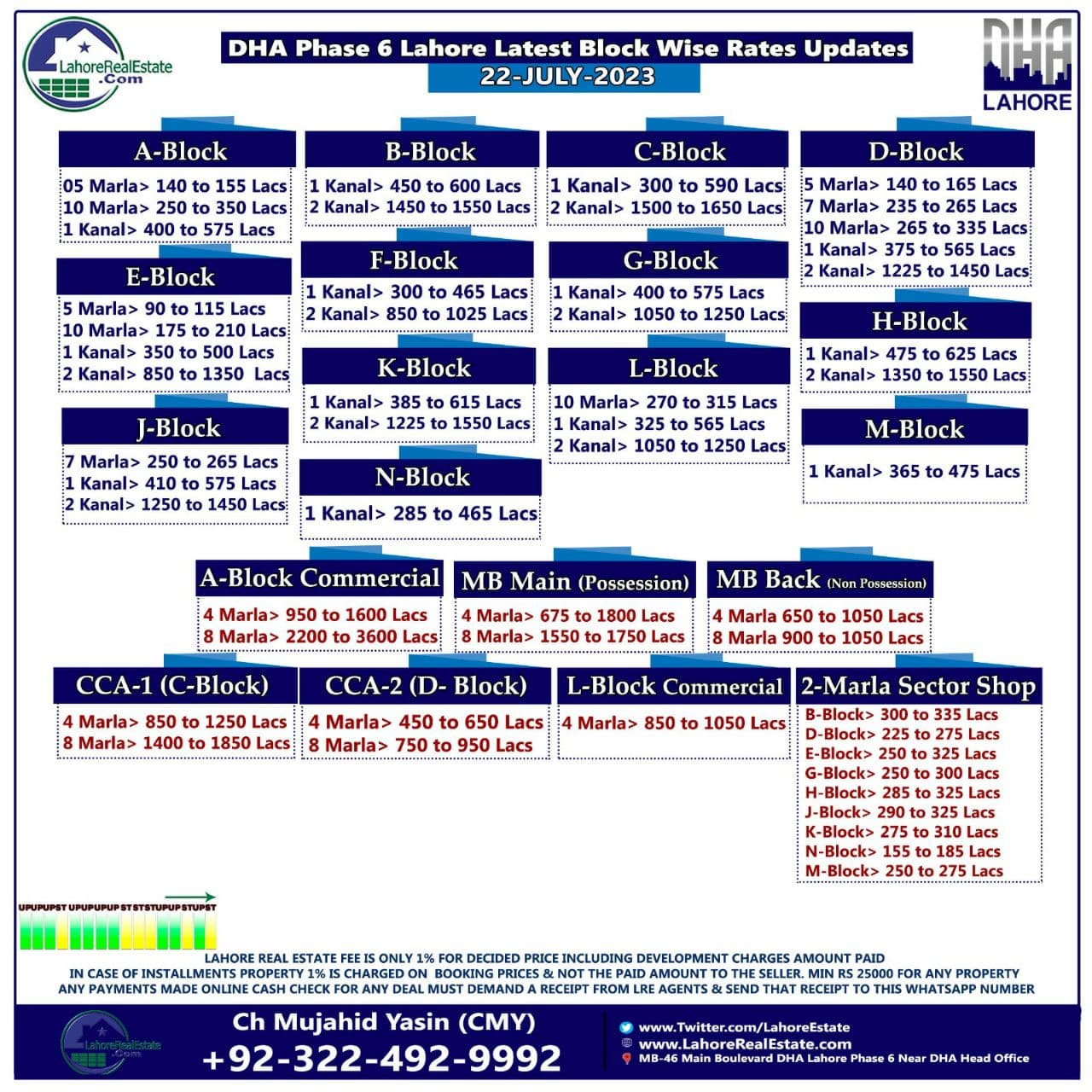 DHA Lahore Phase 6 Plot Prices Blockwise Rates 25th July 2023
