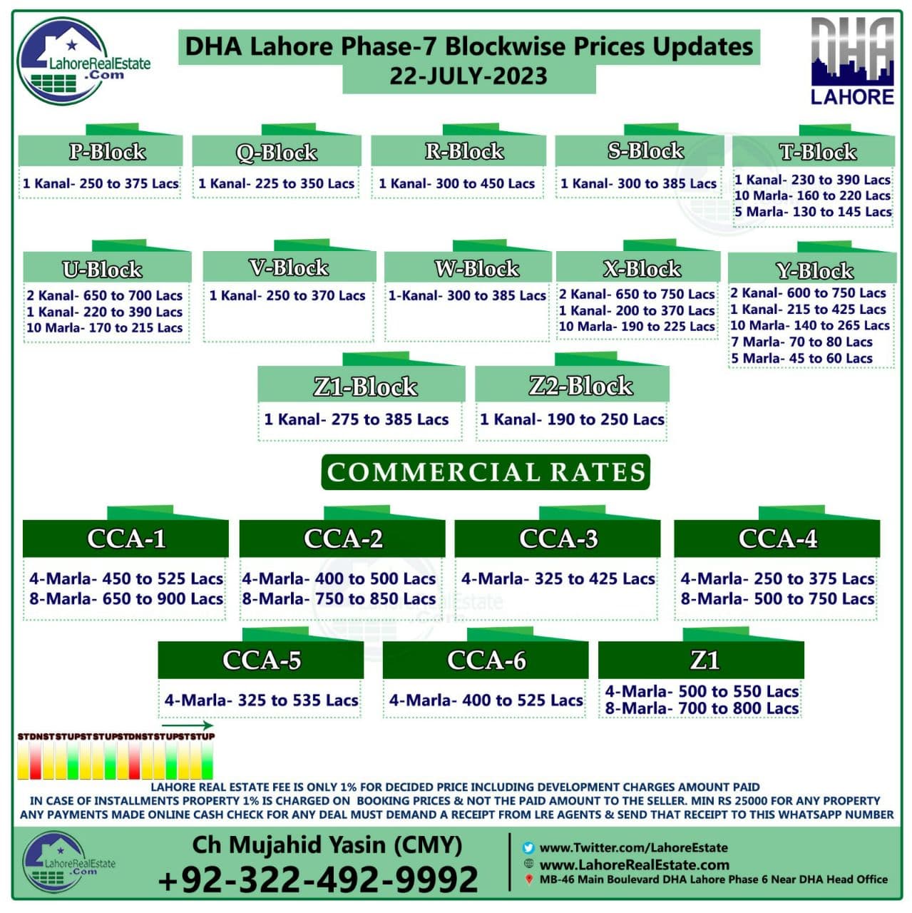 DHA Lahore Phase 7 Plot Prices Blockwise Rates 25th July 2023