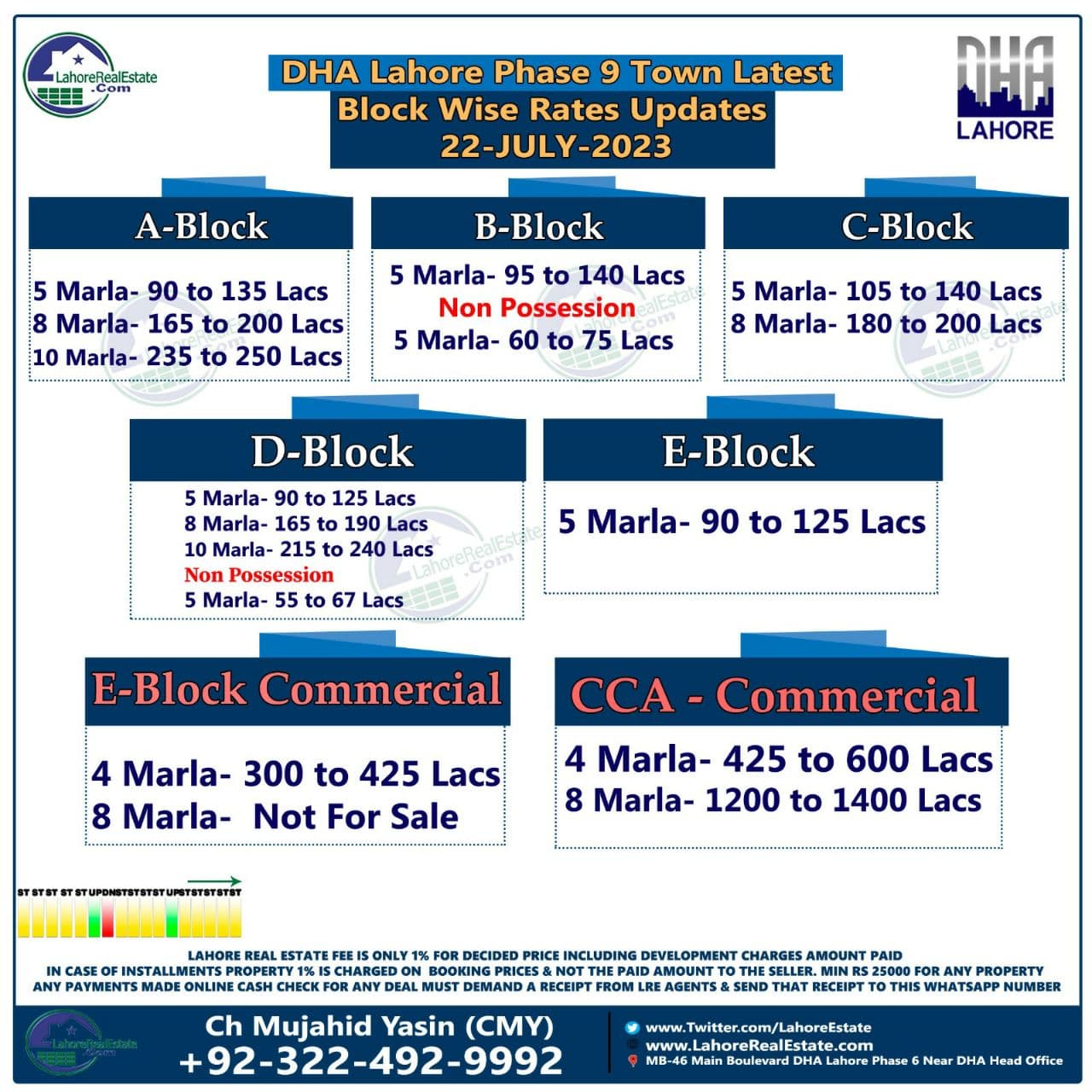 DHA Lahore Phase 9 Town Plot Prices Blockwise Rates 25th July 2023