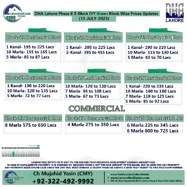 DHA Lahore Phase 8 IVY Green Plot Prices Blockwise Rates 17th July 2023