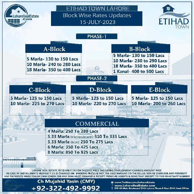 Etihad Town Lahore Plot Prices Blockwise Rates 17th July 2023