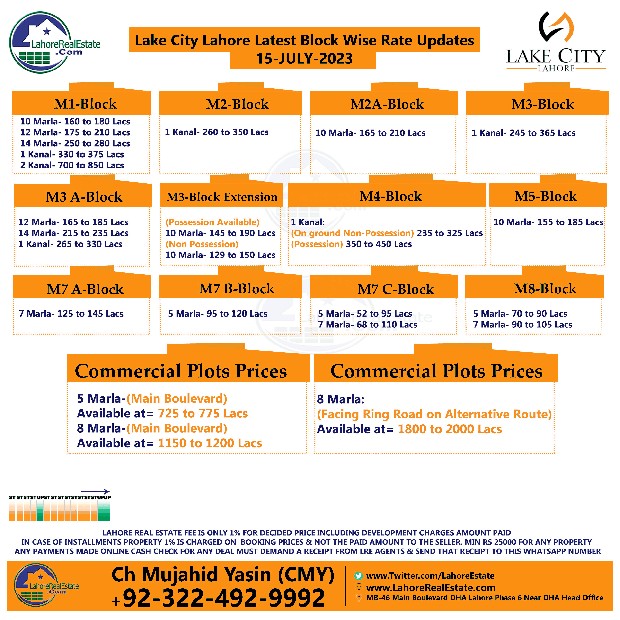 Lake City Lahore Plot Prices Blockwise Rates 17th July 2023