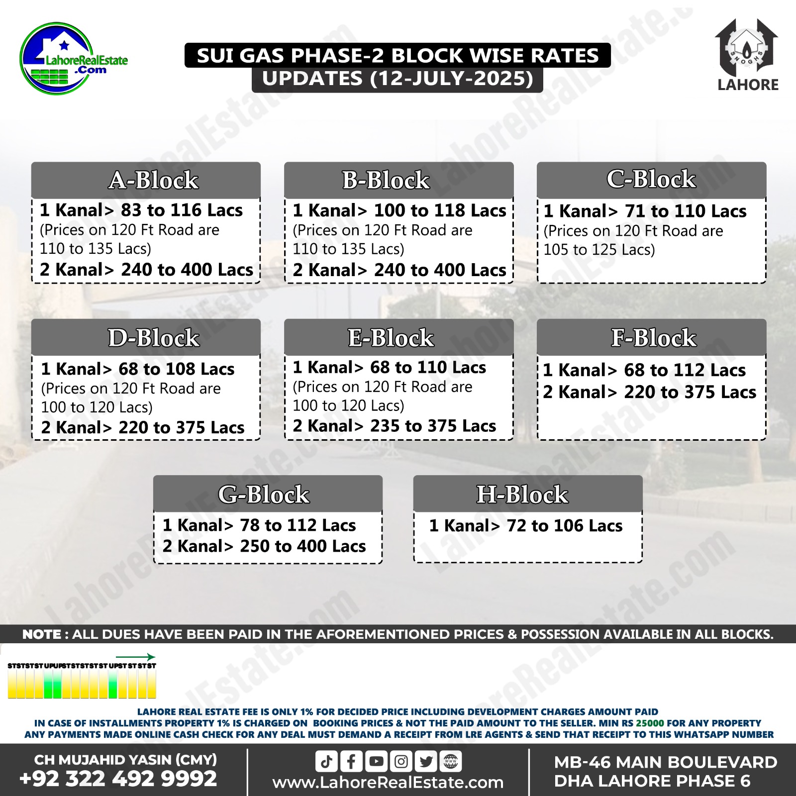 Sui Gas Phase-2 Lahore Plot Prices Blockwise Rates July 15, 2025