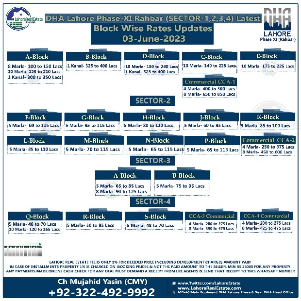 DHA Rahbar Sector 1 2 3 4 Plot Prices Blockwise Rates 05 June 2023