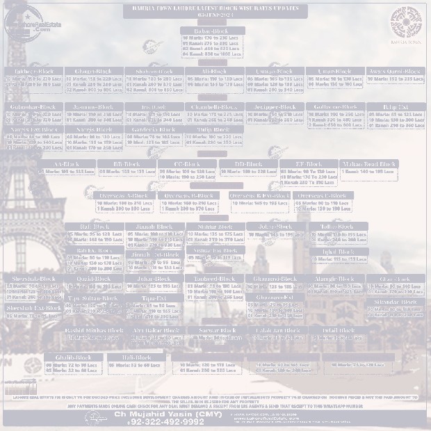 Bahria Town Lahore Plot Prices Blockwise Rates 05 June 2023