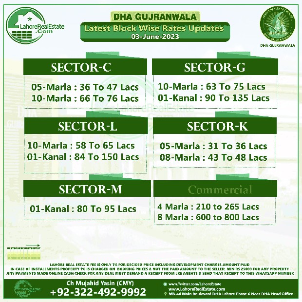 DHA Gujranwala Plot Prices Blockwise Rates 05 June 2023