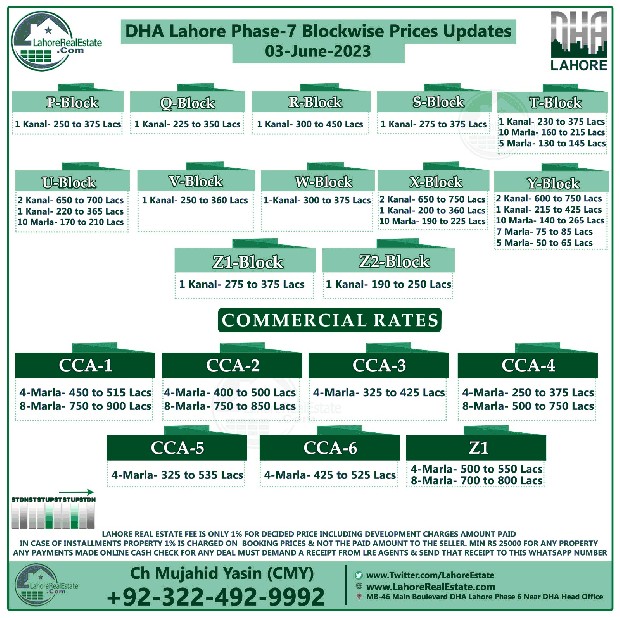 DHA Lahore Phase 7 Plot Prices Blockwise Rates 22nd May 2023