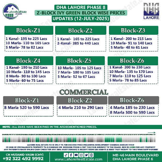 DHA Lahore Phase 8 Z Block File Rates Update