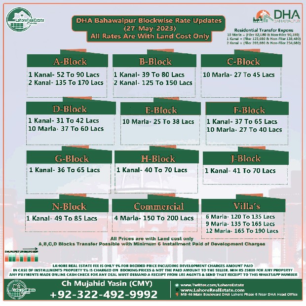 DHA Bahawalpur Plot Prices Blockwise Rates 29th May 2023