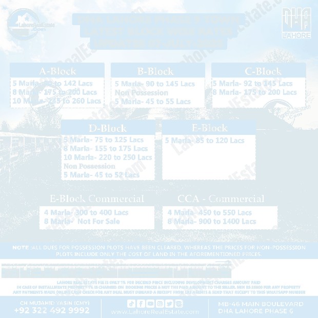 DHA Lahore Phase 8 Plot Prices Blockwise Rates July 09, 2025