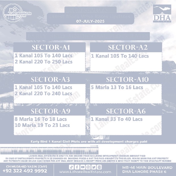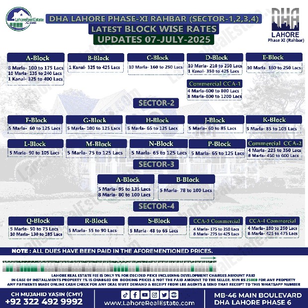 DHA Rahbar Sector 1 2 3 4 Plot Prices Blockwise Rates July 09, 2025