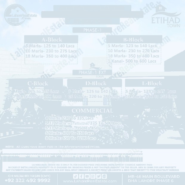 Etihad Town Lahore Plot Prices Blockwise Rates July 09, 2025