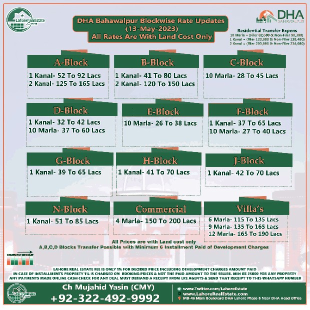 DHA Bahawalpur Plot Prices Blockwise Rates 17th May 2023