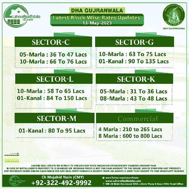 DHA Gujranwala Plot Prices Blockwise Rates 17th May 2023