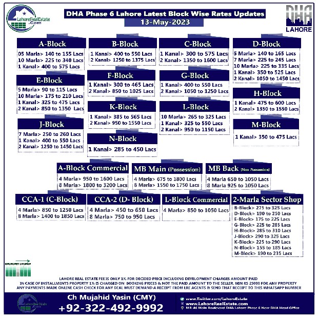 DHA Lahore Phase 6 Plot Prices Blockwise Rates 17th May 2023