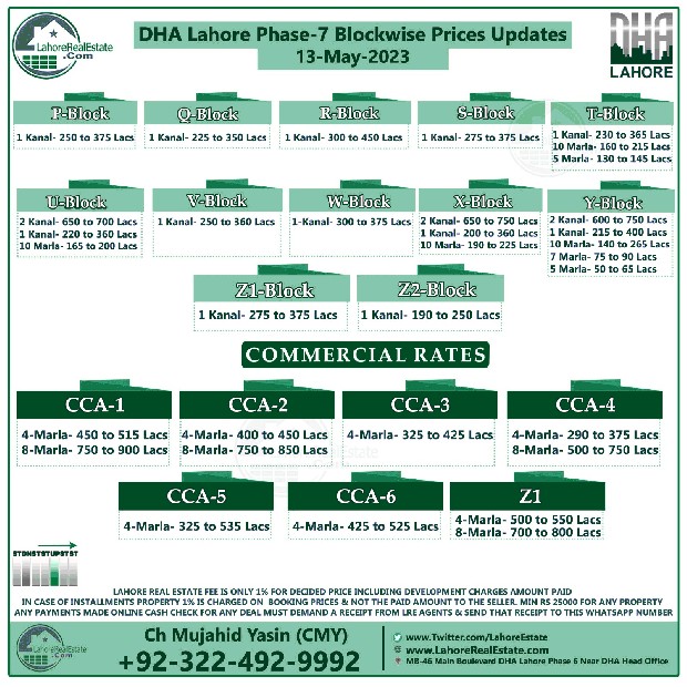 DHA Lahore Phase 7 Plot Prices Blockwise Rates 17th May 2023