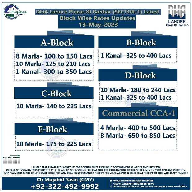 DHA Rahbar Sector 1 Plot Prices Blockwise Rates 17th May 2023