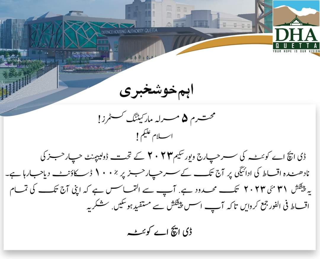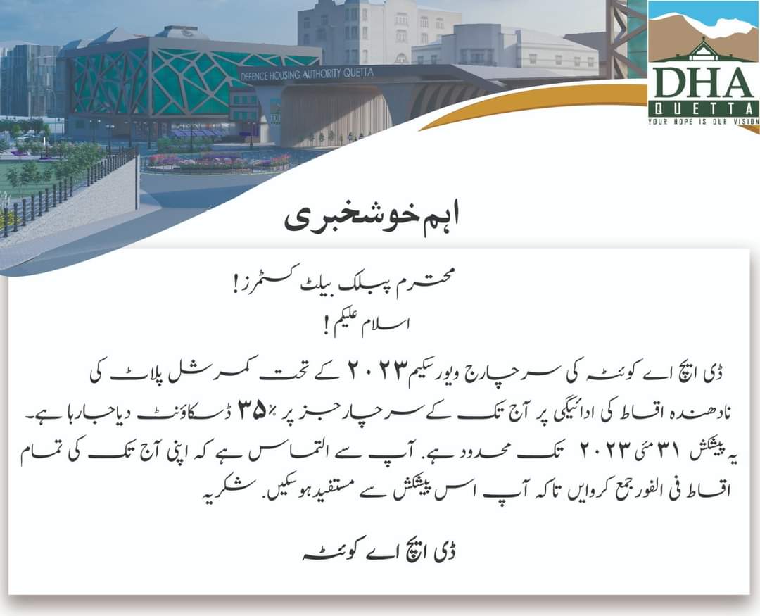 DHA Quetta Early Bird Commercial (8 Marla) 180.00 Lacs Downpayment + Own