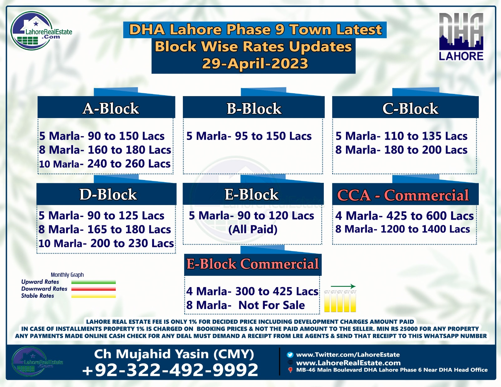 DHA Lahore Phase 9 Town Lahore Plot Prices Blockwise Rates Update 5th May 2023