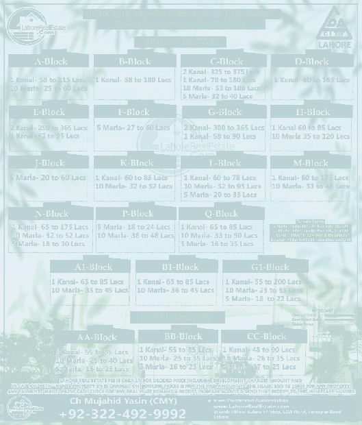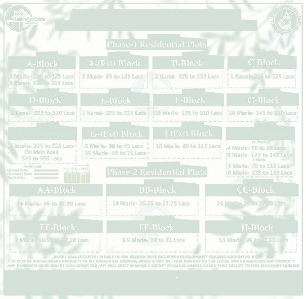 LDA City Lahore Plot Prices Blockwise Rates Update 5th May 2023