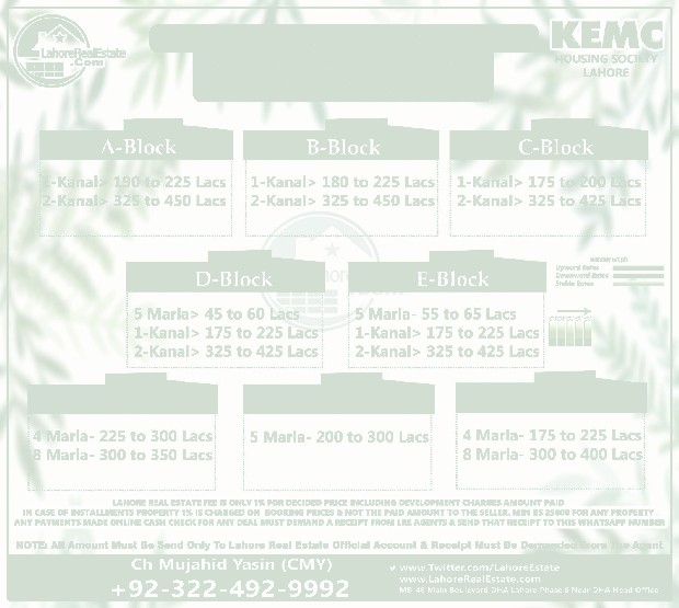 KEMC Lahore Plot Prices Blockwise Rates Update 5th May 2023