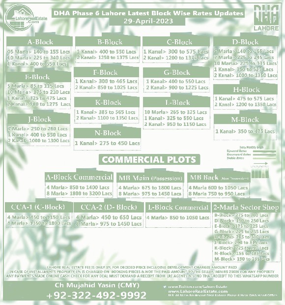 DHA Lahore Phase 6 Lahore Plot Prices Blockwise Rates Update 5th May 2023