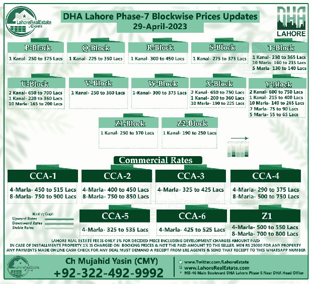 DHA Lahore Phase 7 Lahore Plot Prices Blockwise Rates Update 5th May 2023
