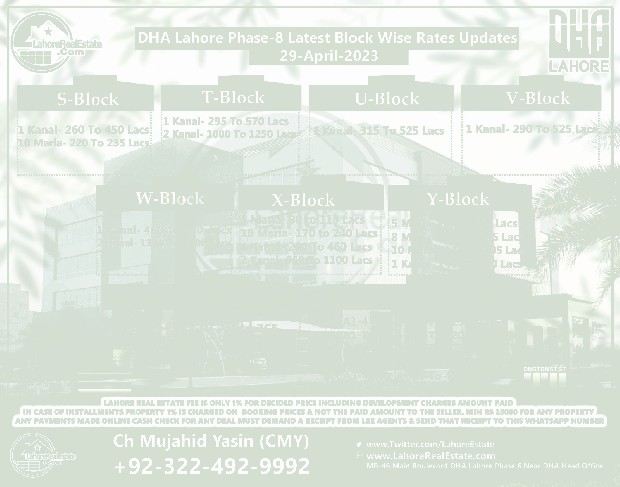 DHA Lahore Phase 8 Lahore Plot Prices Blockwise Rates Update 5th May 2023
