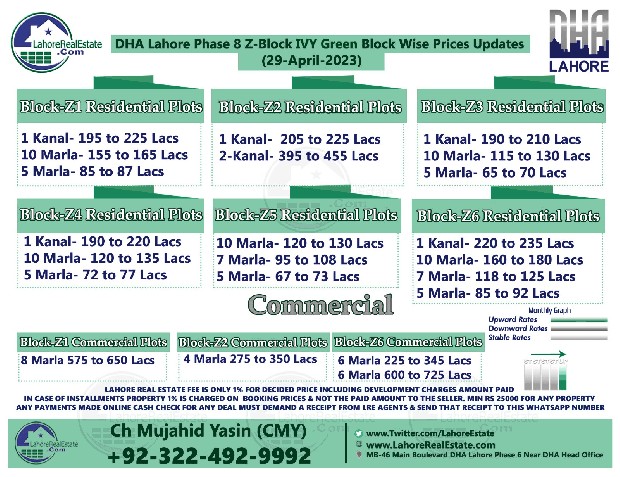 DHA Lahore Phase 8 IVY Green Lahore Plot Prices Blockwise Rates Update 5th May 2023