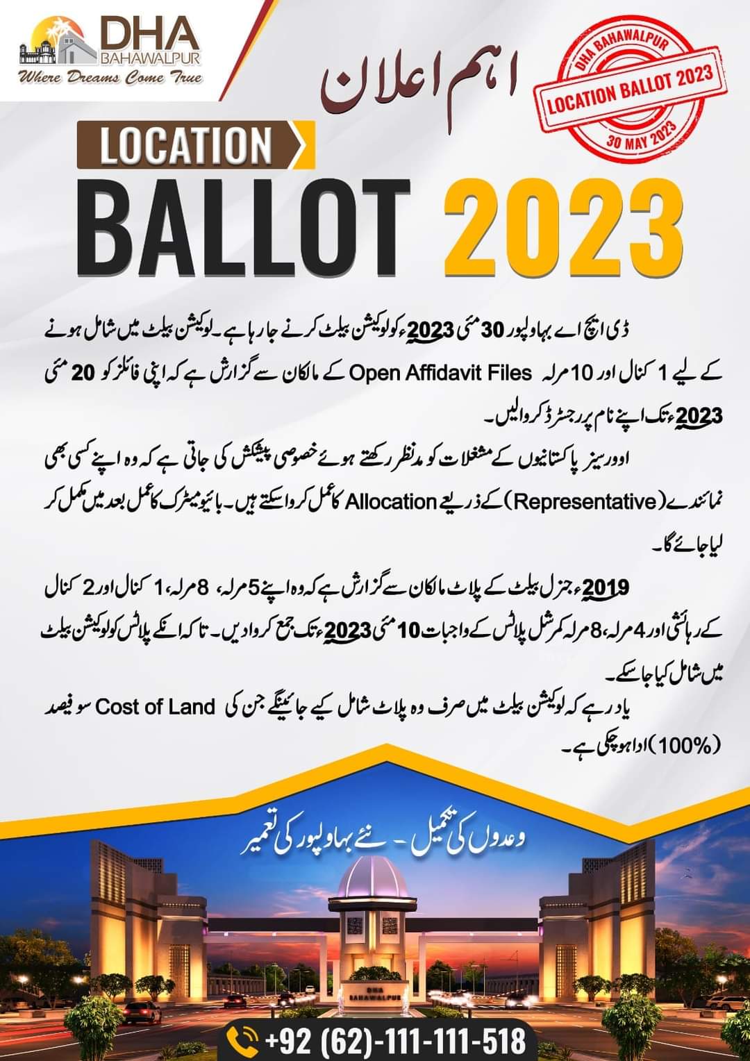 DHA Bahawalpur Land Allocation (10-Marla) Not Available