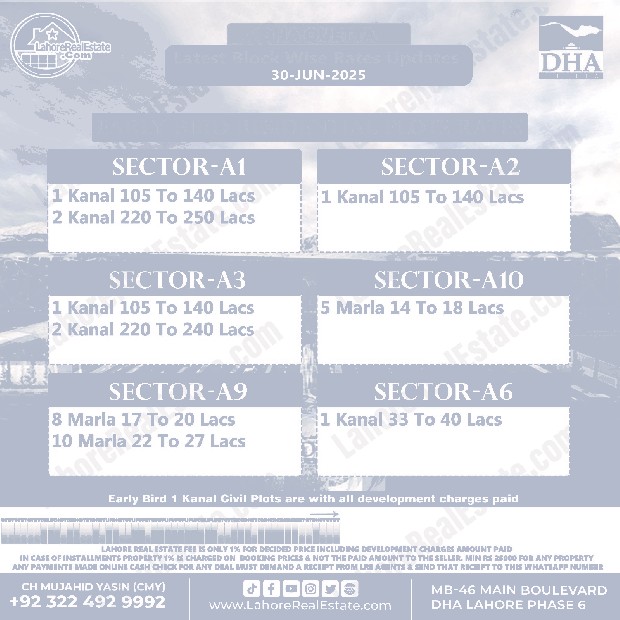 DHA Lahore Phase 6 Plot Prices Blockwise Rates June 30, 2025