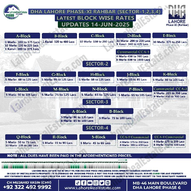 DHA Rahbar Sector 1 2 3 4 Plot Prices Blockwise Rates June 16, 2025