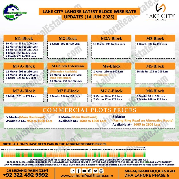 Lake City Lahore Plot Prices Blockwise Rates June 16, 2025